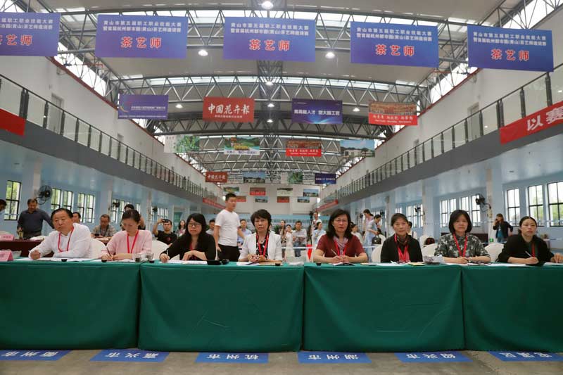 安徽省人社厅职业能力建设处处长刘晓燕,中共黄山市委组织部副部长、市人社局局长陈立青,杭州市人社局职业能力建设处处长骆锦伦,湖州市人社局调研员沈福群,衢州市人社局副局长牛建彪以及市直有关单位的领导出席了开赛仪式。国家一级评茶员张星海担任大赛裁判长,全国茶艺师技能大师工作室领衔人倪晓英等15名专家担任大赛裁判。