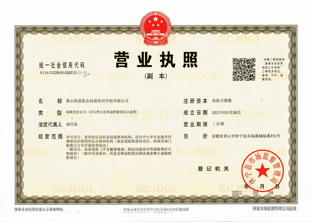据黄山锐蓝教育科技有限公司总经理汤仕波介绍,黄山锐蓝是一家以研学实践教育、劳动实践教育为主体的企业,“黄山锐蓝职业技能培训学校有限公司”的成立,完善了公司的产业链,形成了“世界技能大赛+研学实践教育+劳动实践教育+职业技能培训”的人才培养新模式,能更好地发挥公司“国家技能人才培育突出贡献单位”的示范作用,打造我市培育高技能人才的新高地,并将为“黄山锐蓝”插上腾飞的翅膀。