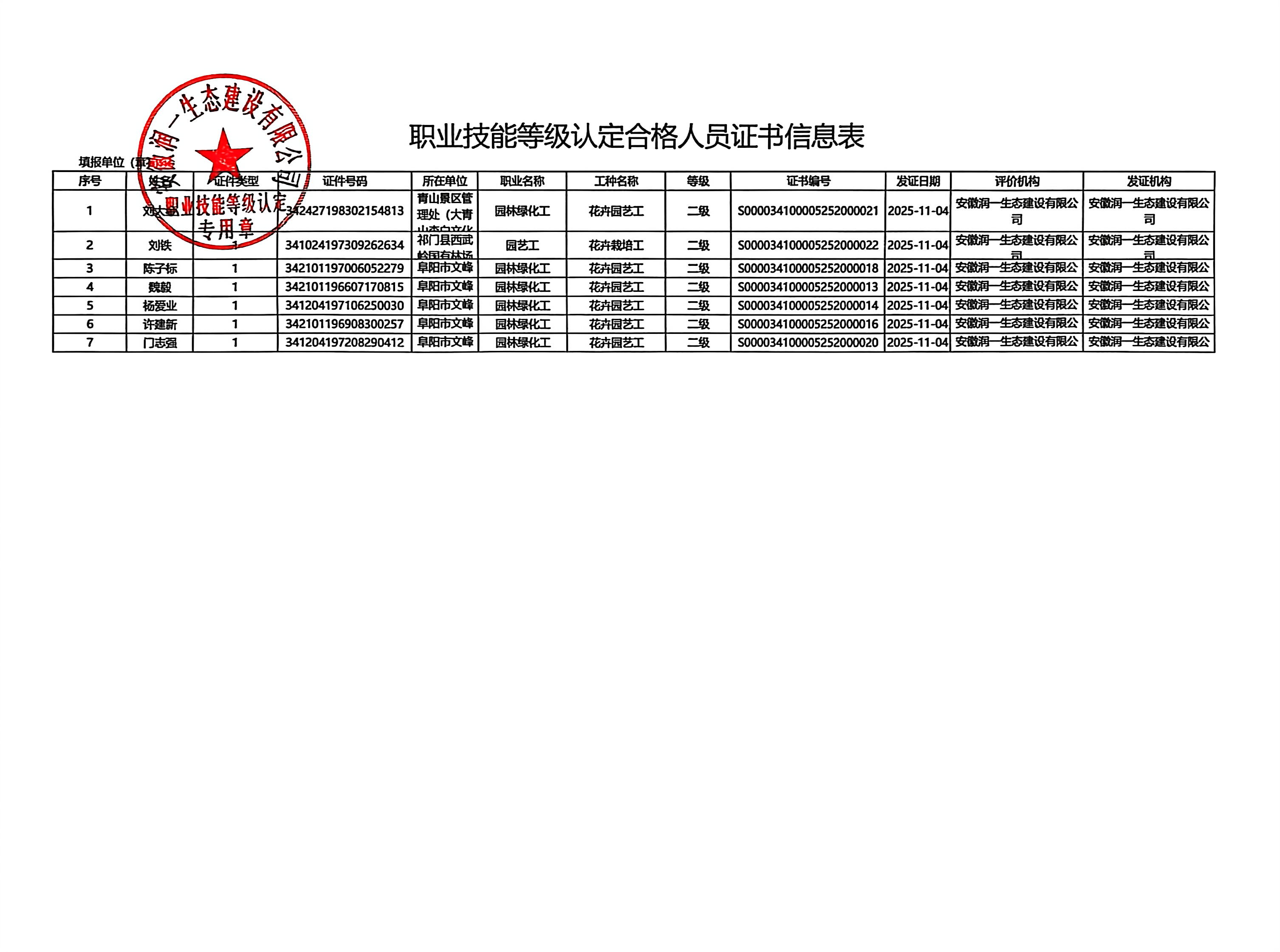 2024年03月17日开展年度第一批次职业技能认定工作。通过笔试和现场技能考核双重认定后,参加本次技能认定的共31人,合格31人,现将考核成绩公示五天(2024年3月25-2024年3月30日)。投诉举报电话:05592354480(黄山市职业技能鉴定中心)0559-7503666(安徽润一公司)职业技能等级认定合格人员证书信息表3.17(1).xlsx