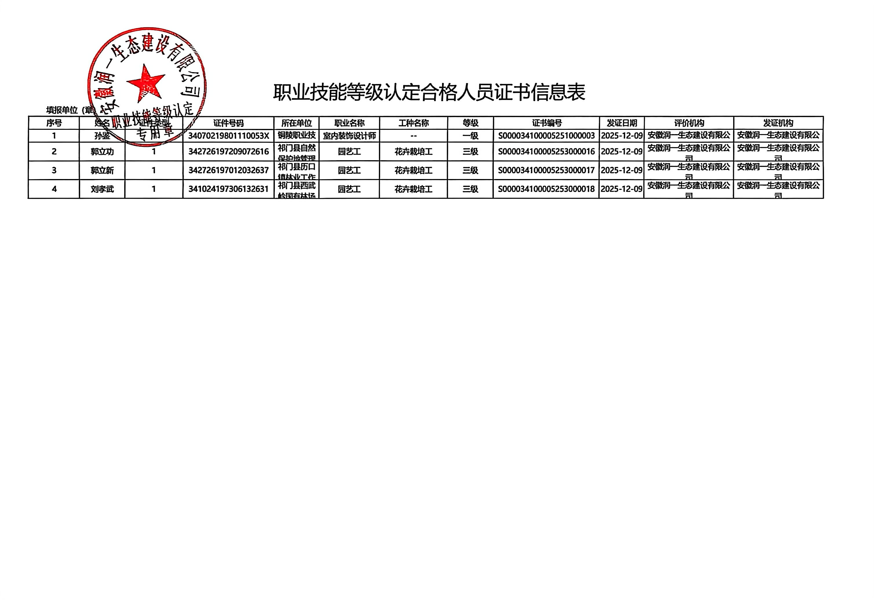 2025年07月26日开展年度第四批次职业技能认定工作。经过笔试、综合评定和现场技能考核三重认定后,参加本次技能认定的共3人,合格2人,现将考核成绩公示七天(2025年8月10日-2025年8月17日)。投诉举报电话:0559-2354480(黄山市职业技能鉴定中心) 0559-7503666(安徽润一公司)