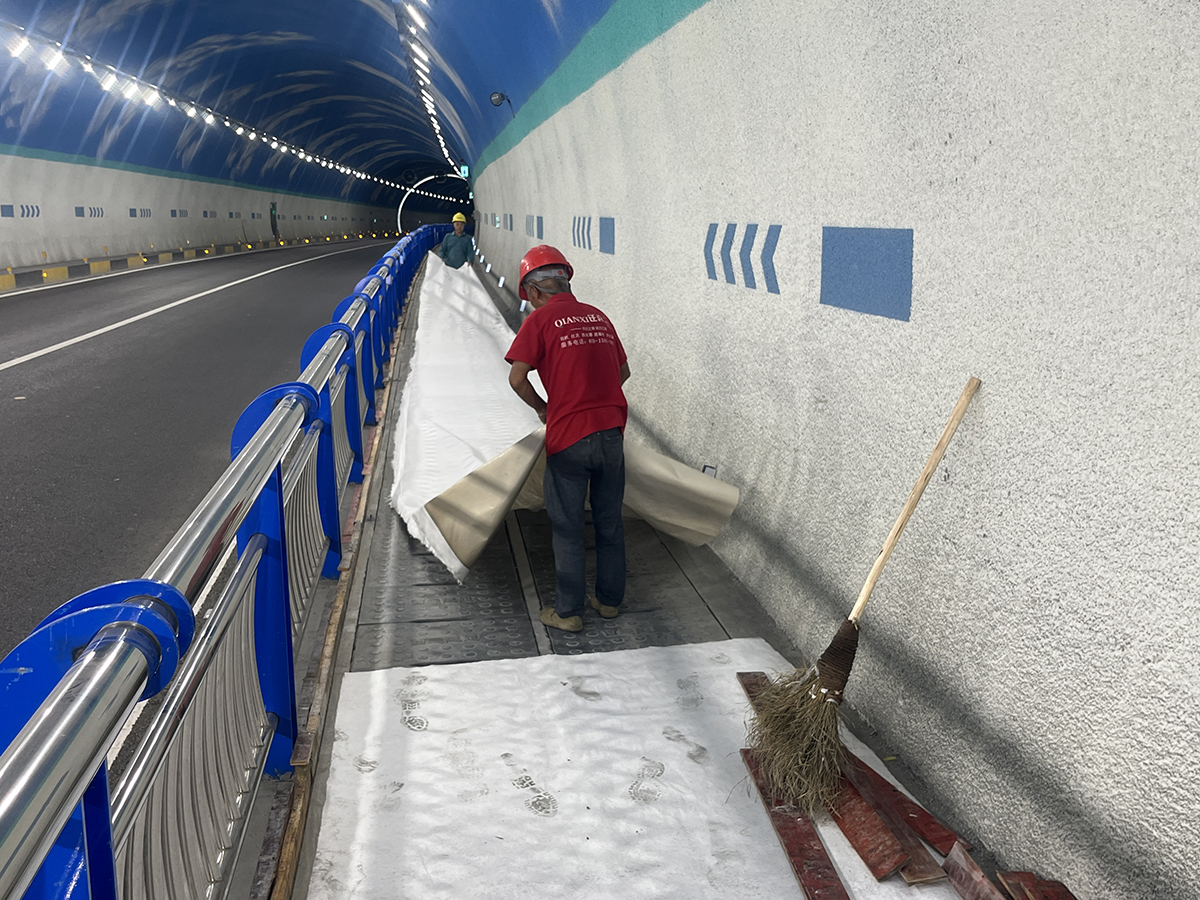 在主体结构养护成型后,随后对表面进行彻底清扫,施作了一层坚固耐磨的彩色聚合物砂浆罩面。这层“保护衣”不仅进一步提升了盖板的耐久性,其统一的色调也让隧道环境显得更加整洁、美观。