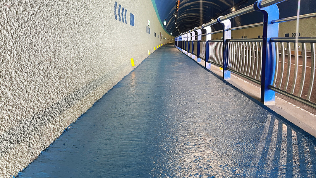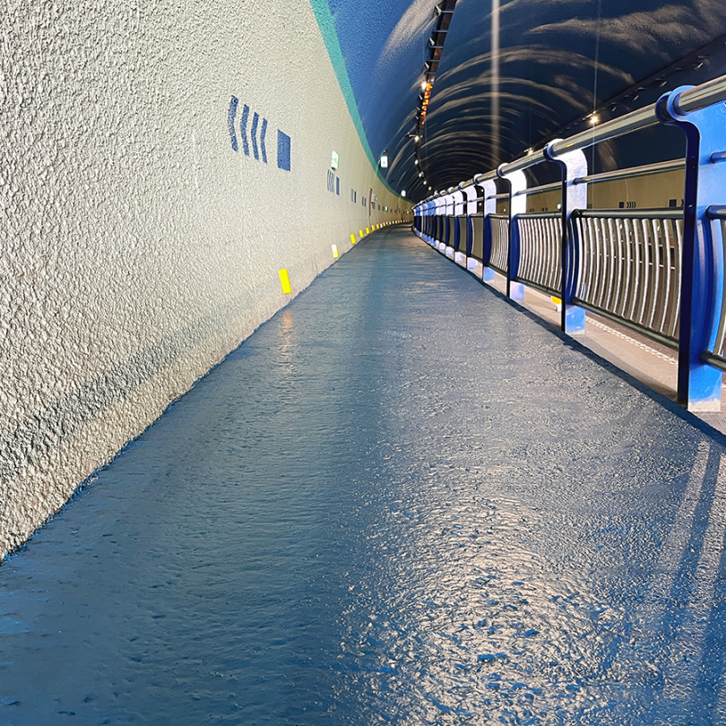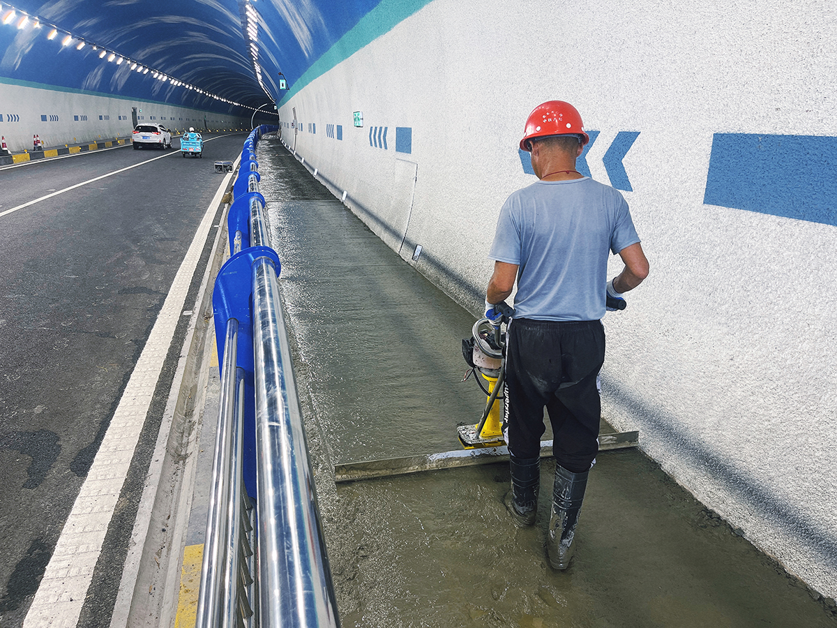 在主体结构养护成型后,随后对表面进行彻底清扫,施作了一层坚固耐磨的彩色聚合物砂浆罩面。这层“保护衣”不仅进一步提升了盖板的耐久性,其统一的色调也让隧道环境显得更加整洁、美观。